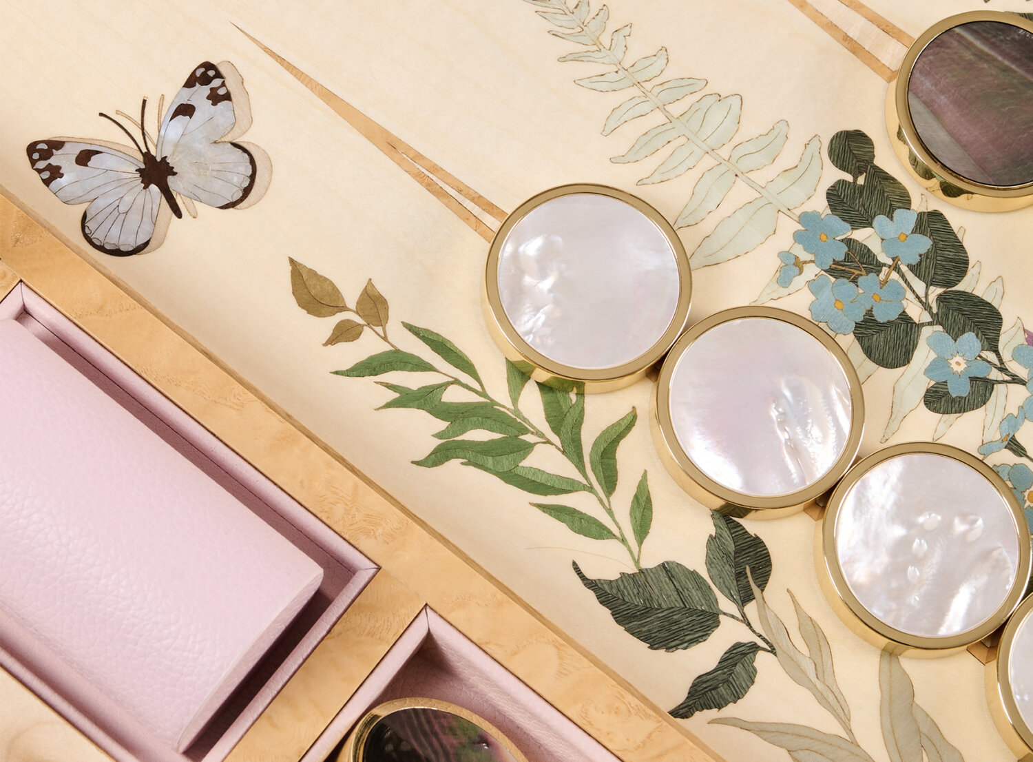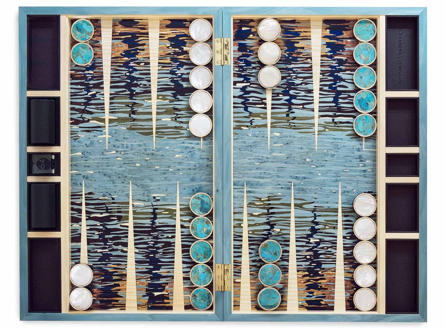 bespoke marquetry backgammon playing pieces by alexandra llewellyn