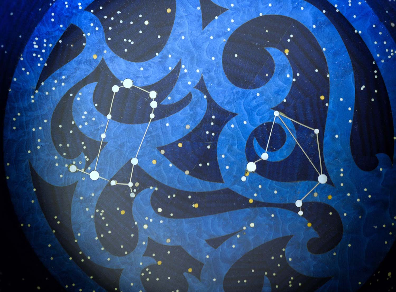 The central bowl is inlaid with the family’s insignia in blue Madrona Burr wood and the star signs of their children.