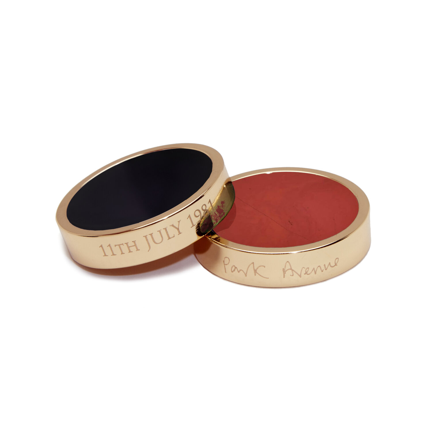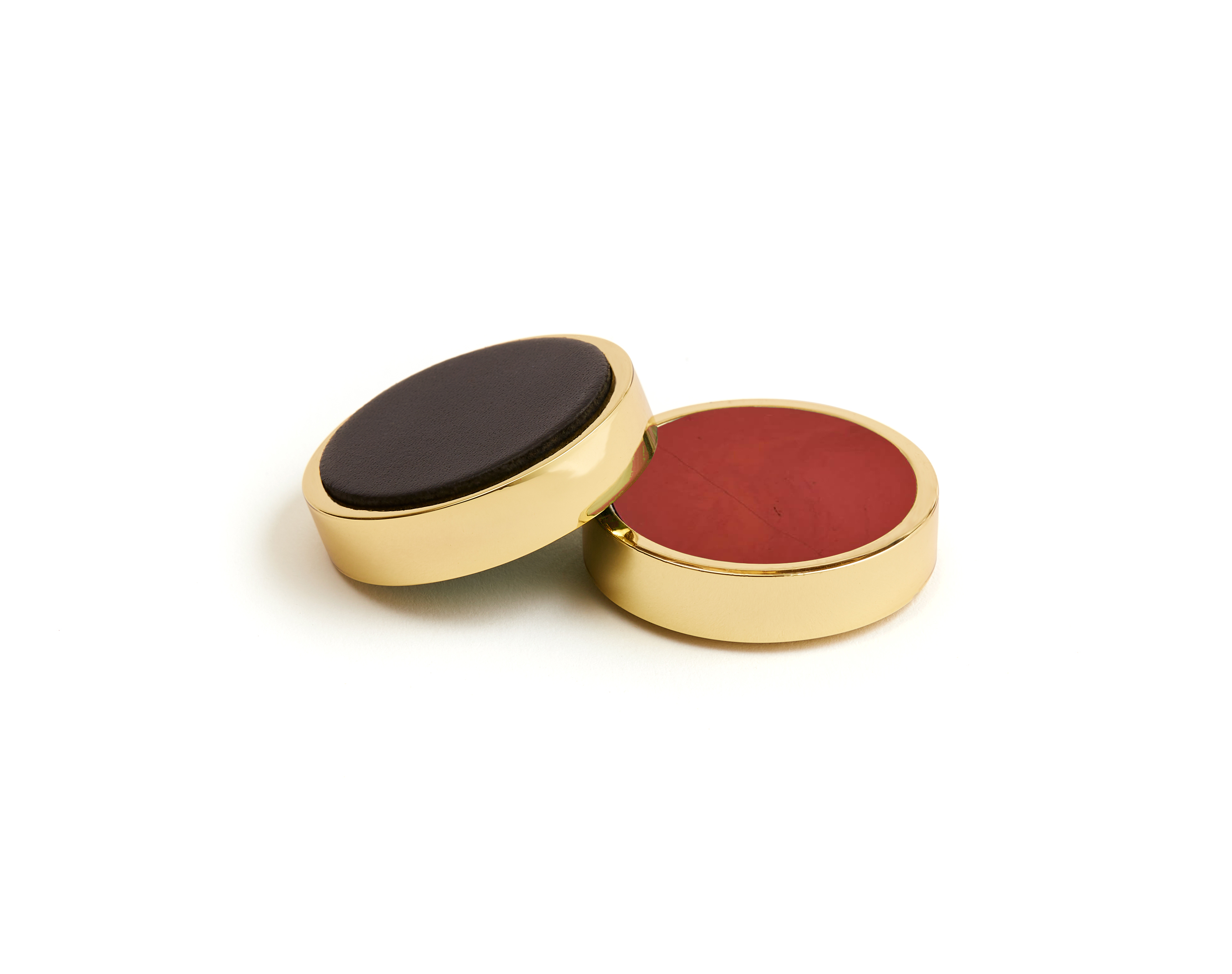 Elevate your backgammon experience with this complete set of 30 semi-precious stone playing pieces. Expertly handcrafted for tournament-size boards, this set features 15 vibrant red jasper and 15 black obsidian pieces, personally recommended by Alexandra for their complementary colours, pattern, and texture, and is encased in metal with a gleaming gold finish. A high-performance black leather base ensures smooth movement across the board and protects your playing surface.