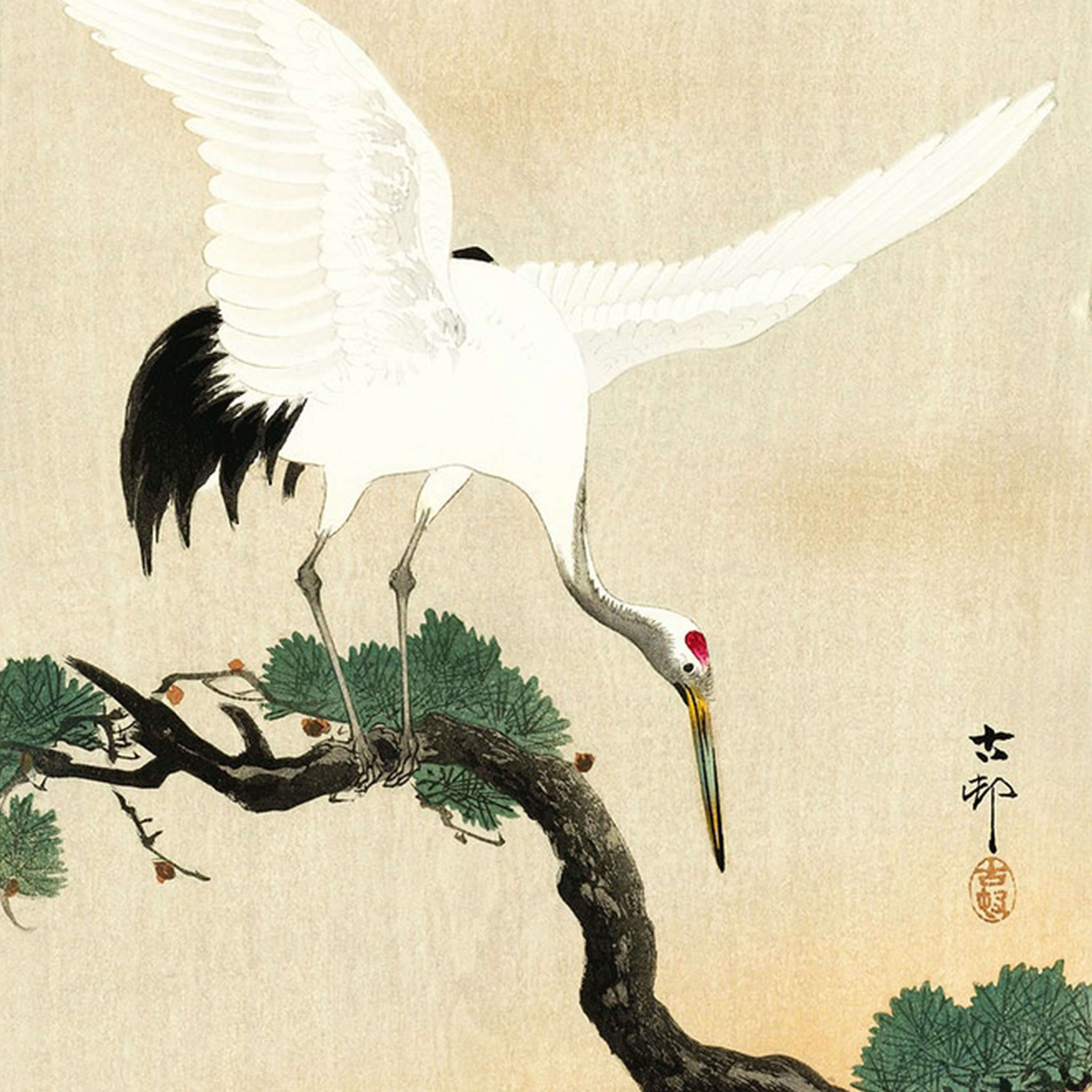 Perhaps the most captivating trait of the red crowned crane is its willingness to put on a show, beginning with a song, followed by a very distinctive dance, which is perfectly captured in the original Alexandra Llewellyn design. Alongside these famously sociable creatures, another popular Japanese symbol, the red poppy, unfurls its vibrant petals.